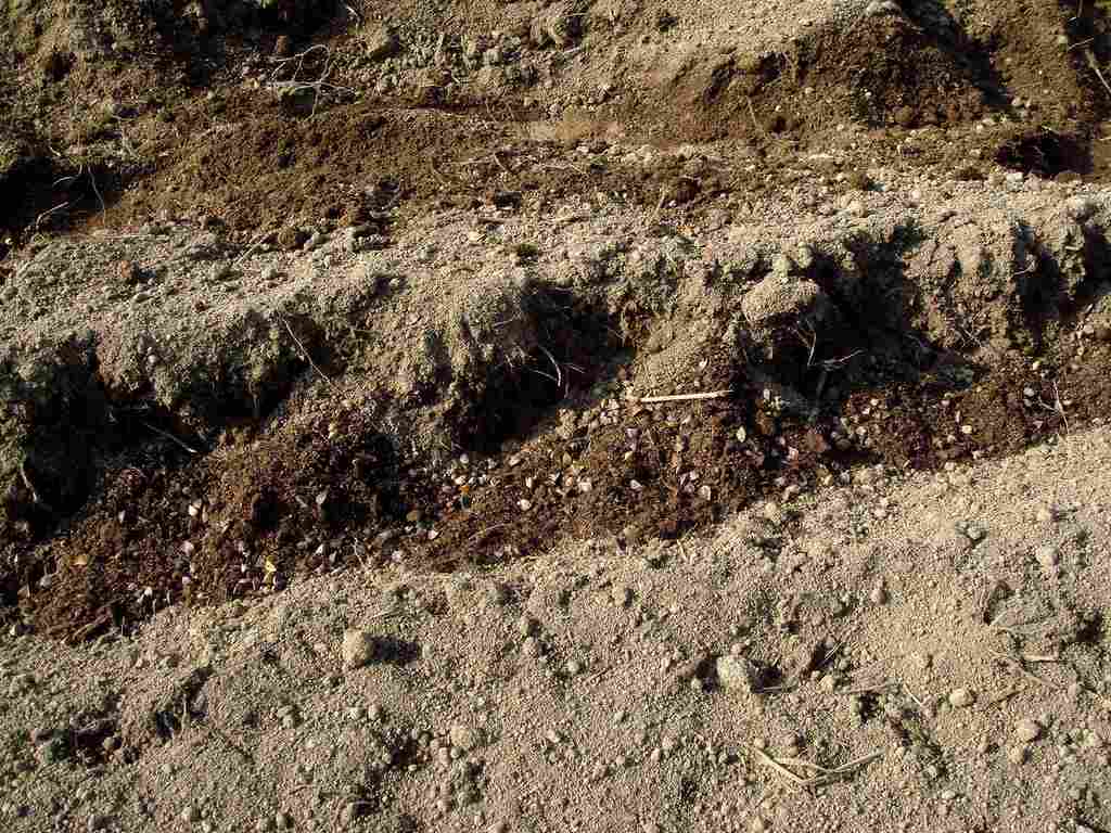 写真で色が濃くみえる土が肥料で、その上に撒かれているのが蕎麦の種です。