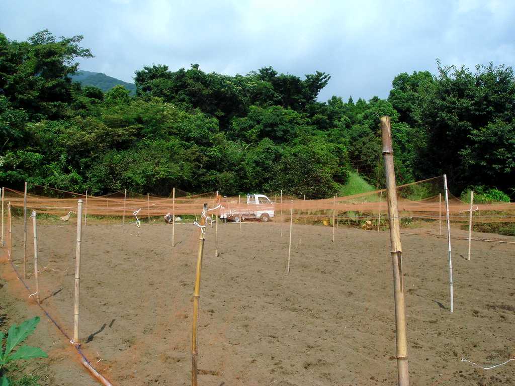 こうやって網をかけておけば実が生った時に鳥に食べられる心配も無し。