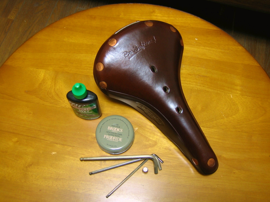 で、外したBROOKSのサドルにオイルを塗って作業終了。