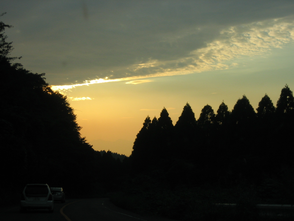 心配していた雨も小雨程度しか降らず、キレイな夕焼けを見ながら熊本ICへ。