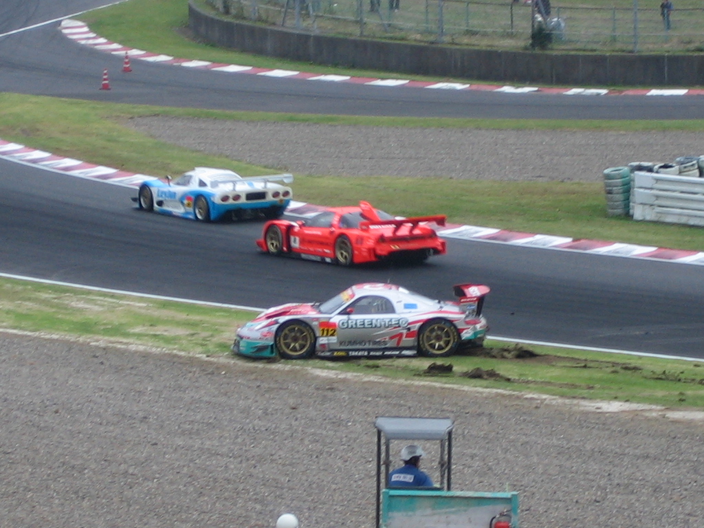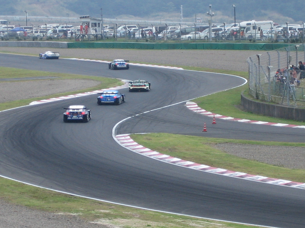 ちょうど、通称『ジェットコースター』と呼ばれる下り坂の下を歩いていた自分達は、頭上を通る凄い排気音を聞く事になり、ジェットコースターを抜けてからの右コーナー観覧スペースでその車を目の当たりにしました。