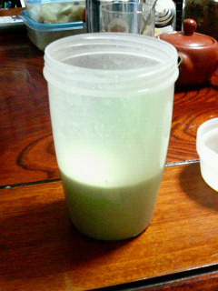 一番最初の画像は「青汁プロテインジュース」という、本人も今日始めて自分で作った飲み物。